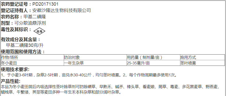 當(dāng)前位置: > 旱地除草 > 30克/升甲基二磺隆OD